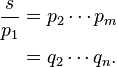 Assume that s > 1 is the product of prime numbers in two different ways:
